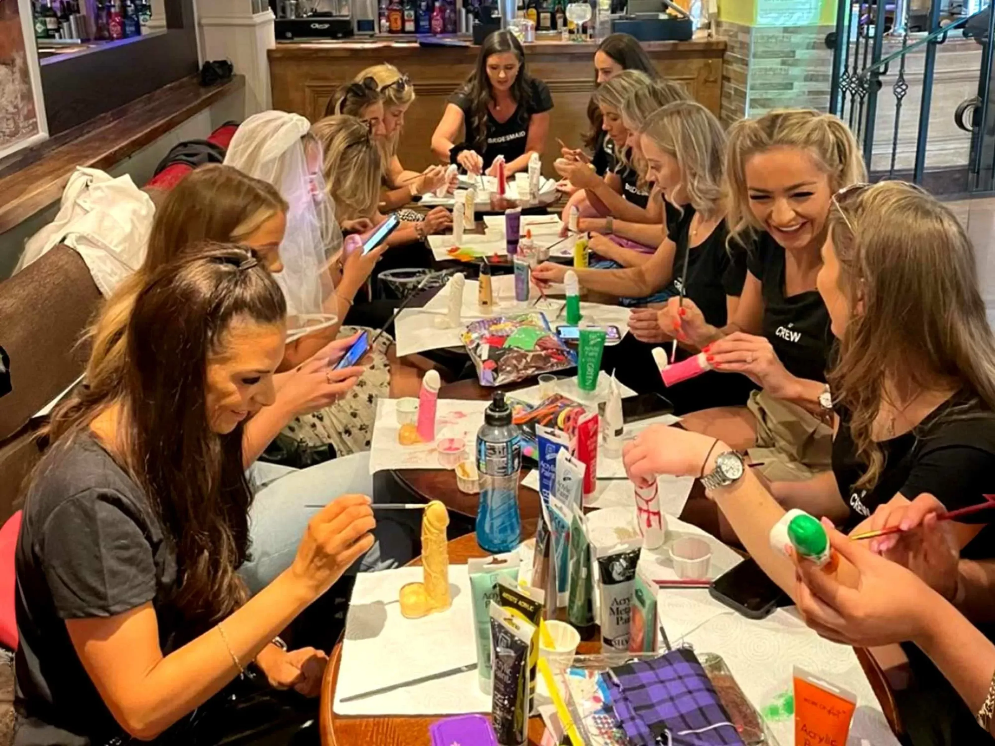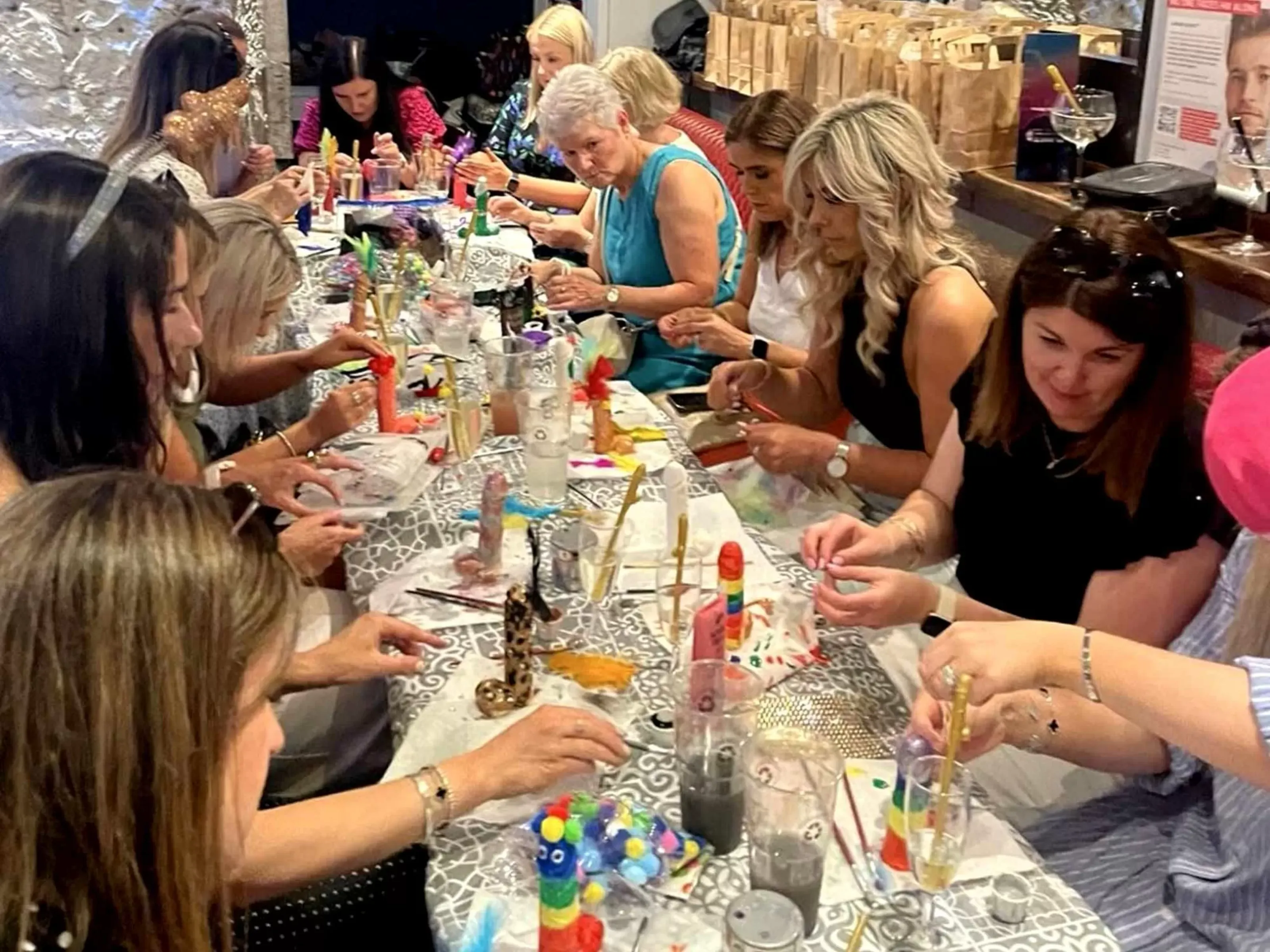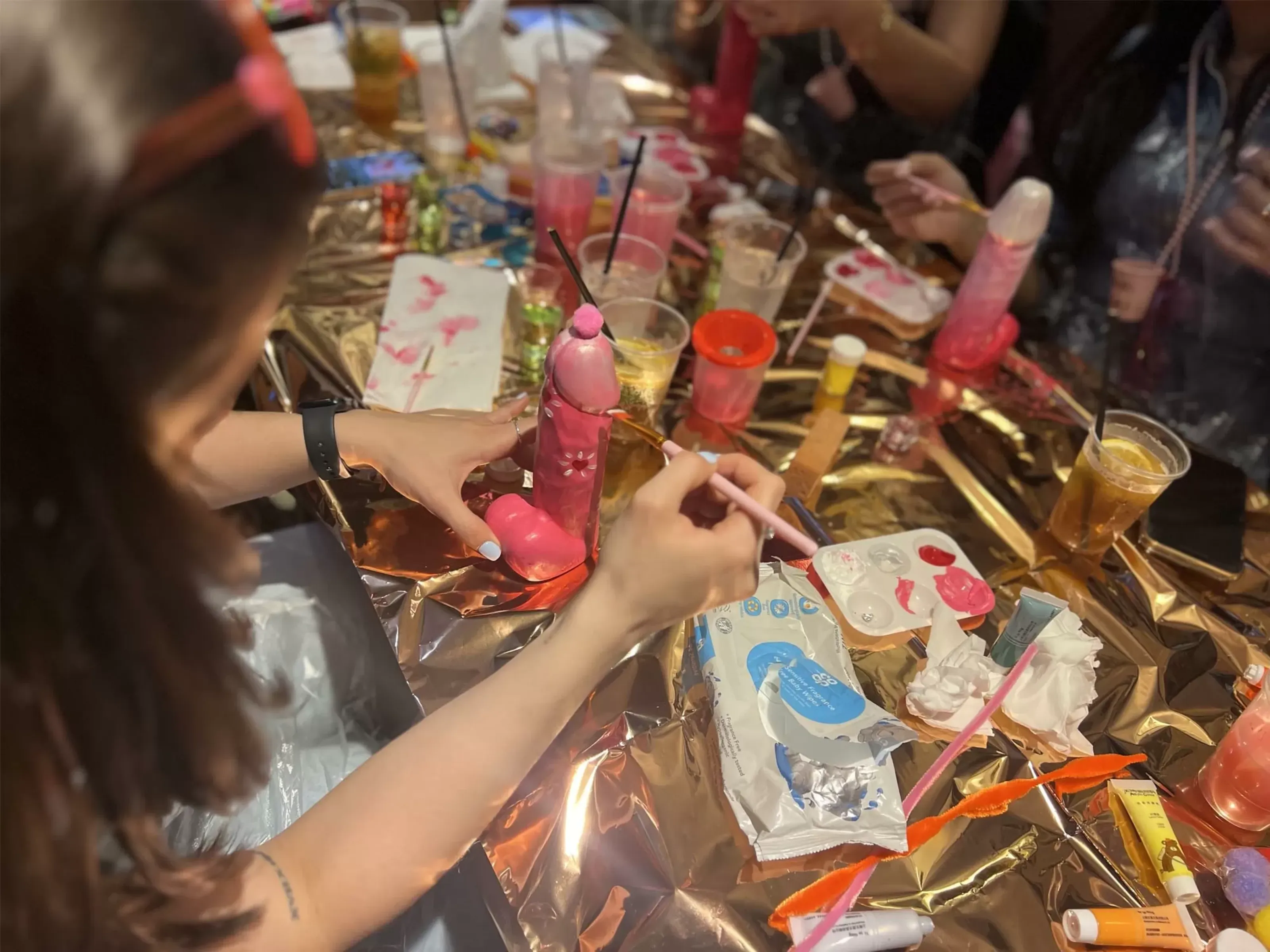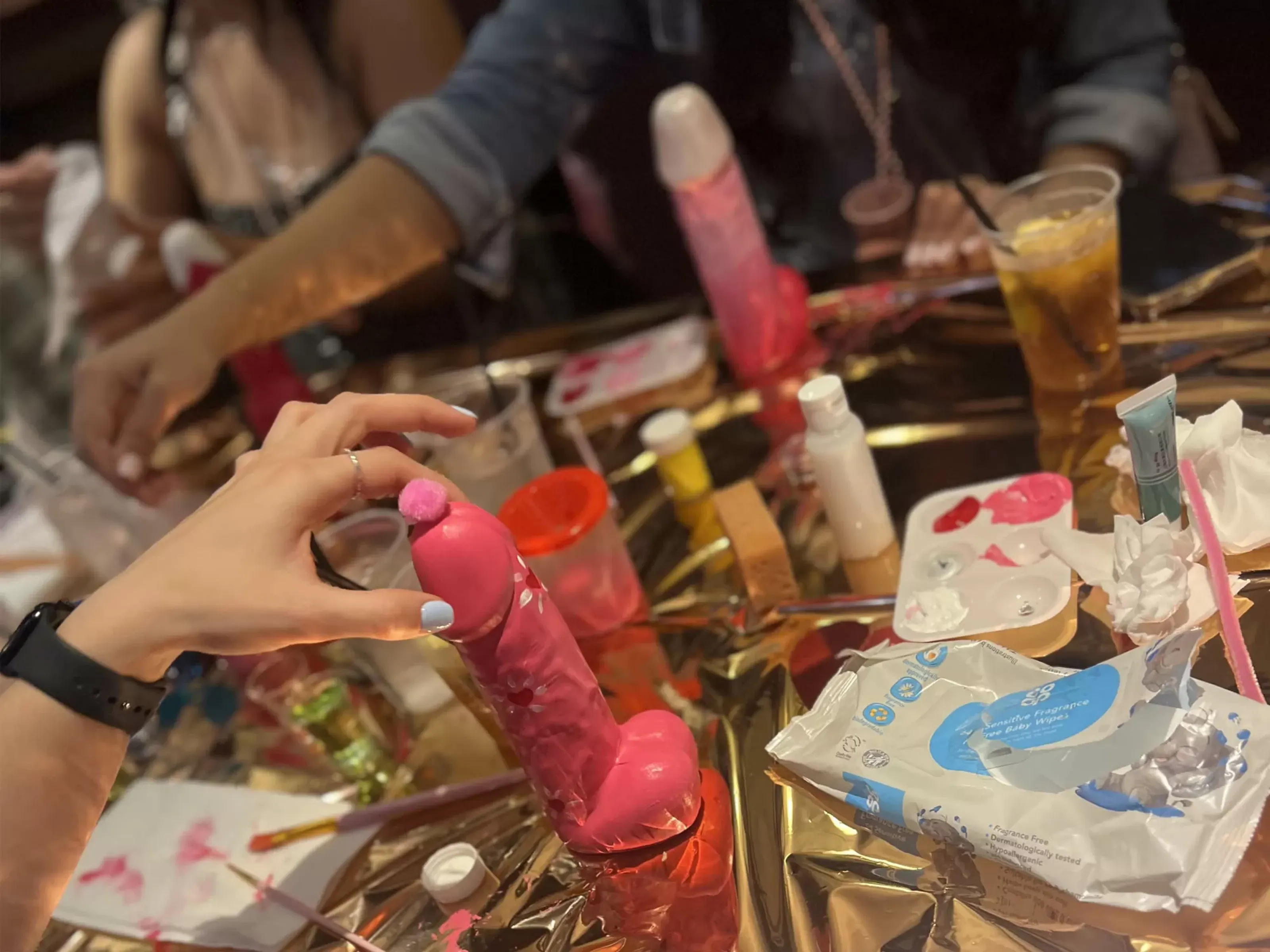 Grab your paint brushes for our pimp that penis hen party activity in Liverpool. Upon arrival at your private venue, you’ll meet your host, who will guide you through the activity. Each person will be given a ceramic penis to paint and decorate using all the equipment. It’s the perfect class to let loose and design your ceramic piece however you like. If you’re staying in a hen party house in Liverpool, we can come to your venue.